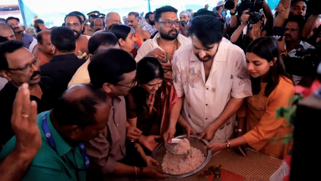 എറണാകുളത്തപ്പൻ ക്ഷേത്രത്തിൽ മഹാ അന്നദാനം ഉദ്ഘാടനം ചെയ്യാൻ മമ്മൂട്ടിയെത്തി. പത്ഭൂഷൺ നേടിയതിന് ശേഷമുള്ള മമ്മൂട്ടിയുടെ ആദ്യ പൊതുചടങ്ങ് കൂടിയായിരുന്നു ഇത്. നിരവധി പേരാണ് താരത്തെ കാണാൻ ക്ഷേത്രത്തിലെത്തിയത്. ഈ അന്നദാന ചടങ്ങിലേക്ക് തന്നെ ക്ഷണിച്ചതിൽ സന്തോഷമെന്നും, തന്റെ ഈ സാന്നിധ്യം നമ്മുടെ സാമുദായിക സൗഹൃദത്തിന്റെ ഉത്തമ ഉദാഹരണമാണെന്നും ചടങ്ങ് ഉദ്ഘാടനം ചെയ്തുകൊണ്ട് മമ്മൂട്ടി പറഞ്ഞു.