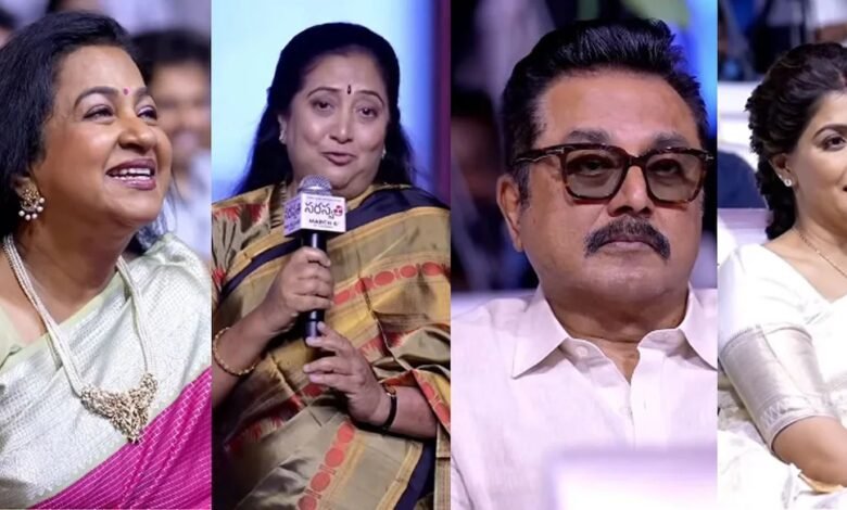 ‘‘എന്നെ ഇവിടെ വിളിച്ചതിന് നന്ദി. വരലക്ഷ്മിയെ അകമഴിഞ്ഞ് പിന്തുണയ്ക്കുന്ന ആളാണ് ഭര്ത്താവ് നിക്ക്. അതുപോലെ തന്നെ ശരത്തും രാധികയും മകൾക്കൊപ്പം തന്നെയുണ്ട്. ഈ സിനിമയുടെ എല്ലാ അംഗങ്ങൾക്കും വിജയാശംസകൾ. ഇനി പറയാൻ പോകുന്നത് സിനിമയുടെ കാര്യമല്ല. തുടക്കകാലത്ത് ദൂരദർശനിൽ അവതാരകയായിരുന്നു ഞാൻ . ജീവിതത്തിലെ സർക്കിളിലെ മനോഹരമായ നിമിഷം രാധിക മാമിനെ അഭിമുഖം ചെയ്തതാണ്. രാധികയുടെ കഴിവിനെ ആദരവോടെ കാണുന്നു. അതൊരു ദീപാവലി സ്പെഷൽ അഭിമുഖമായിരുന്നു, വളരെ മനോഹരമായിരുന്നു