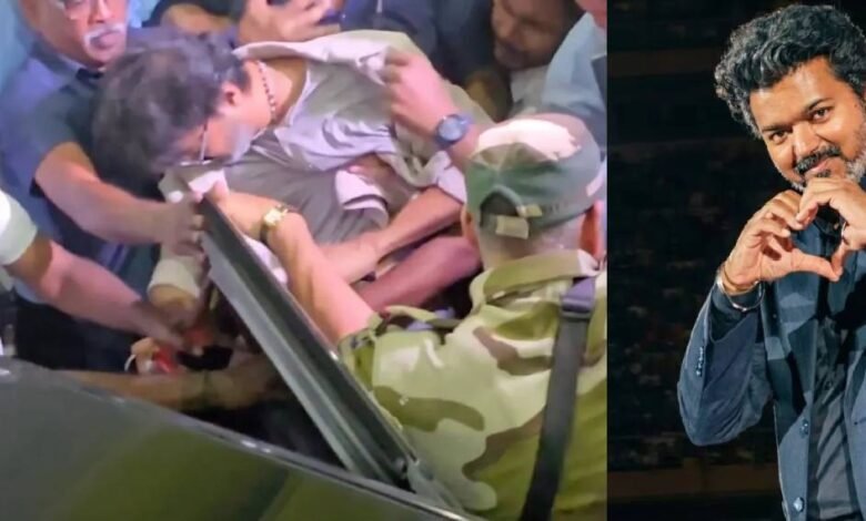 ആരാധകരുടെ തിക്കും തിരക്കും; നിലത്തുവീണ് വിജയ്