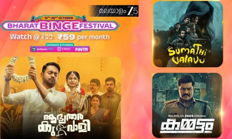 ഭാരത് ബിഞ്ച് ഫെസ്റ്റിവലിന്റെ ഭാഗമായി ഏഴ് ഭാഷകളിലായി പുതിയ പ്രീമിയറുകളും പ്രേക്ഷകർ ഏറെ ഇഷ്ടപ്പെടുന്ന ഹിറ്റുകളും ഉൾപ്പെടുത്തി ഒരുങ്ങുന്ന പ്രത്യേകമായ ആഘോഷമാണ് ZEE5 ഇത്തവണ ഒരുക്കിയിരിക്കുന്നത്.ഹിന്ദിയിൽ:Bhagwat Chapter One – Raakshas, Saali Mohabbat, Honeymoon Se Hathya,തമിഴിൽ:Veduvan, Housemates, Maaman,തെലുങ്ക്ൽ: Kishkindapuri¸D/O Prasadrao Kanabadutaledu, Jayummu Nischayamu Ra,മറാത്തിയിൽ: Sthal, Ata Thambaych Naay, Jarann,​ബംഗാളിയിൽ: Mrs Dasgupta, Mrigaya: The Hunt, Abar Proloy,കന്നഡയിൽ: Elumale, Ayyana Mane,Marigallu,എന്നി ചിത്രങ്ങൾ ZEE5 ഇൽ കാണാം.ZEE5 ഇൽ വമ്പൻ ഹിറ്റായ സുമതി വളവിന് ശേഷം ദീപാവലിക്ക് മലയാളി പ്രേക്ഷകർക്ക് നൽകുന്ന ചിത്രം ആണ് ആഭ്യന്തര കുറ്റവാളി. ചിത്രം ഒക്ടോബർ 17 ന് റിലീസ് ചെയ്യും.ZEE5 ഇന്റെ ആദ്യ വെബ് സീരീസ് ആയ കമ്മട്ടം റെക്കോർഡ് സ്ട്രീമിങ് മിനിറ്റ്സ്ഓടെ ഇപ്പോഴും പ്രദർശനം തുടരുകയാണ്.